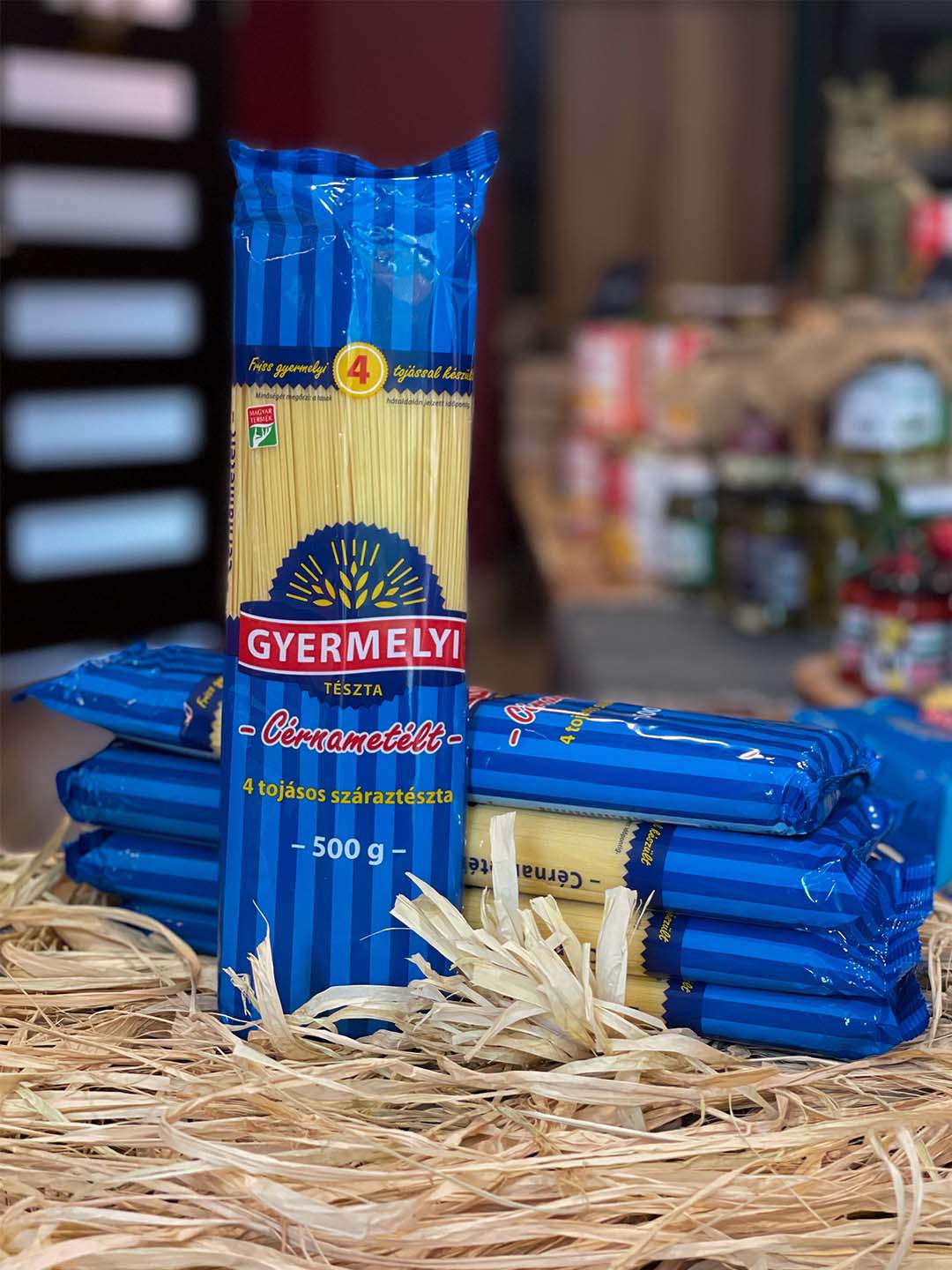 Delikatnie, bladożółty makaron Cernametelt Gyermelyi w formie długich i cienkich nitek idealnych do dań typu spaghetii to makaron czterojajeczny powstający z mąki pszennej (zawierającej gluten). Jeden kilogram gotowego makaronu zawiera cztery sztuki (20%) świeżych jaj kurzych.