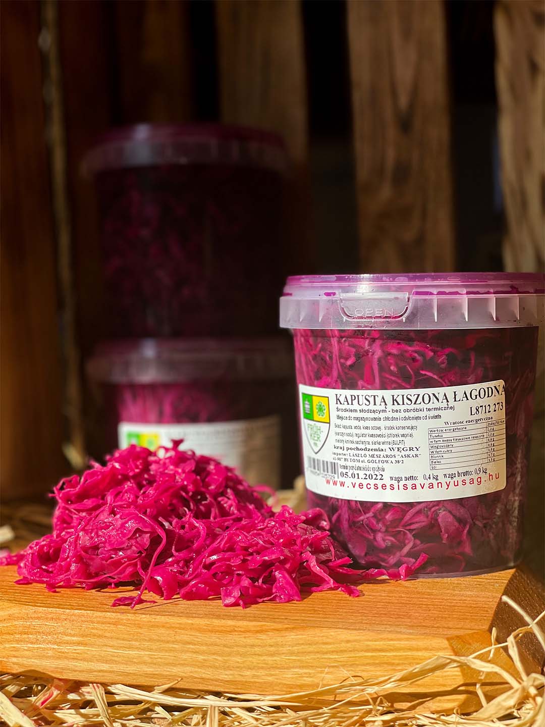 Nabędziecie ją w opakowaniach w postaci wiaderek o pojemności 400g i 900g. Dodatki przyprawowe przyczyniają się do pięknego koloru produktu czyniąc go jeszcze bardziej apetycznym. Zawartość bakterii mlekowych korzystnie wpływa na układ odpornościowy organizmu oraz florę bakteryjną jelit.