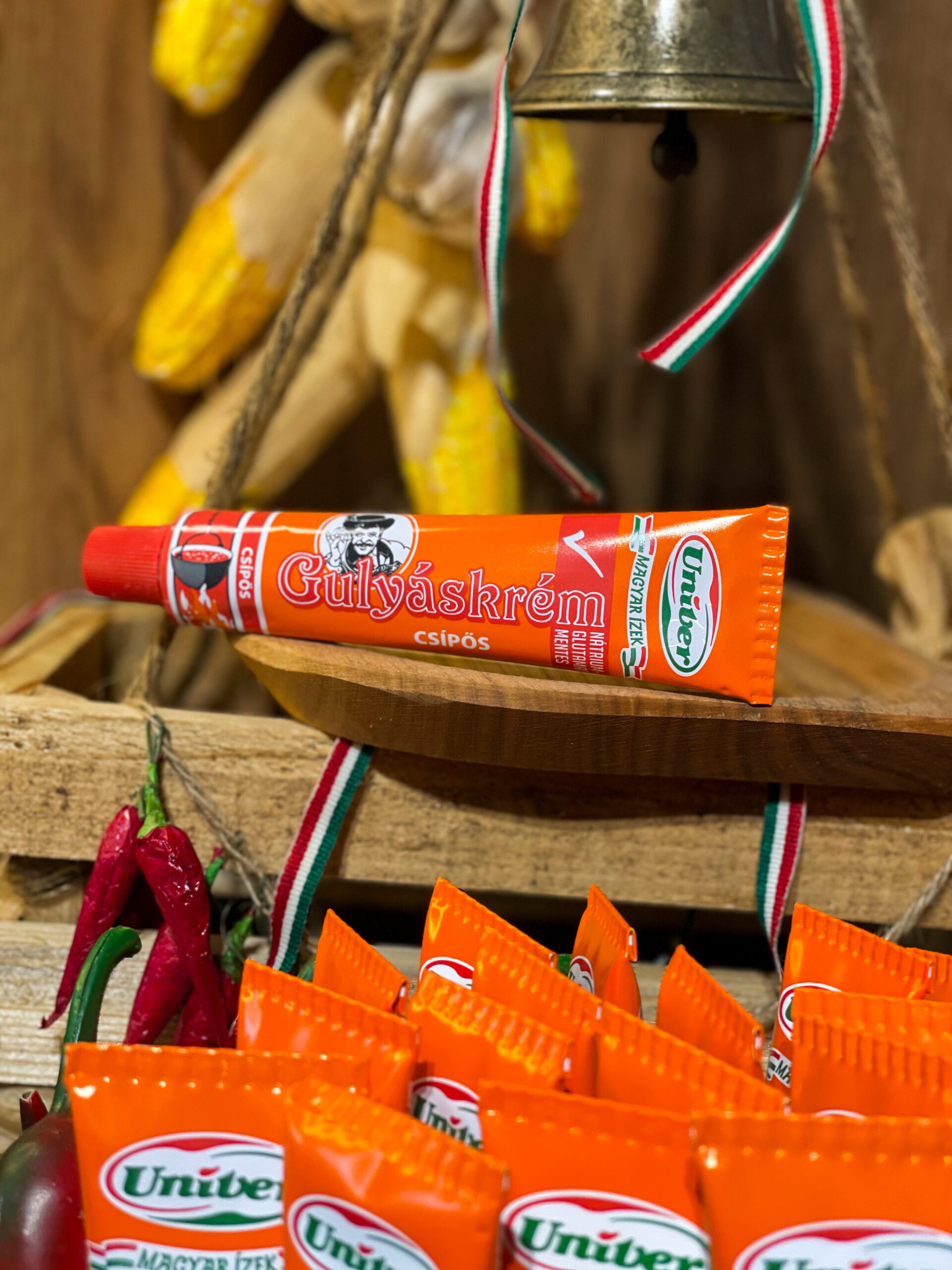 Proporcje poszczególnych dodatków stanowią tajemnicę smaku kremu gulaszowego prosto z Węgier. Produkt został zamknięty w wygodnej tubce do wyciskania, dzięki czemu może być używany wielokrotnie przez bardzo długi czas. W składzie gulyáskrém zrezygnowano z dodatku wzmacniaczy smaku. Jest to bezpieczna przyprawa do gulaszu bez obecności glutaminianu sodu. Po rozpieczętowaniu tubki należy przechowywać ją w chłodnych warunkach, pamiętając także o dokręceniu nakrętki.