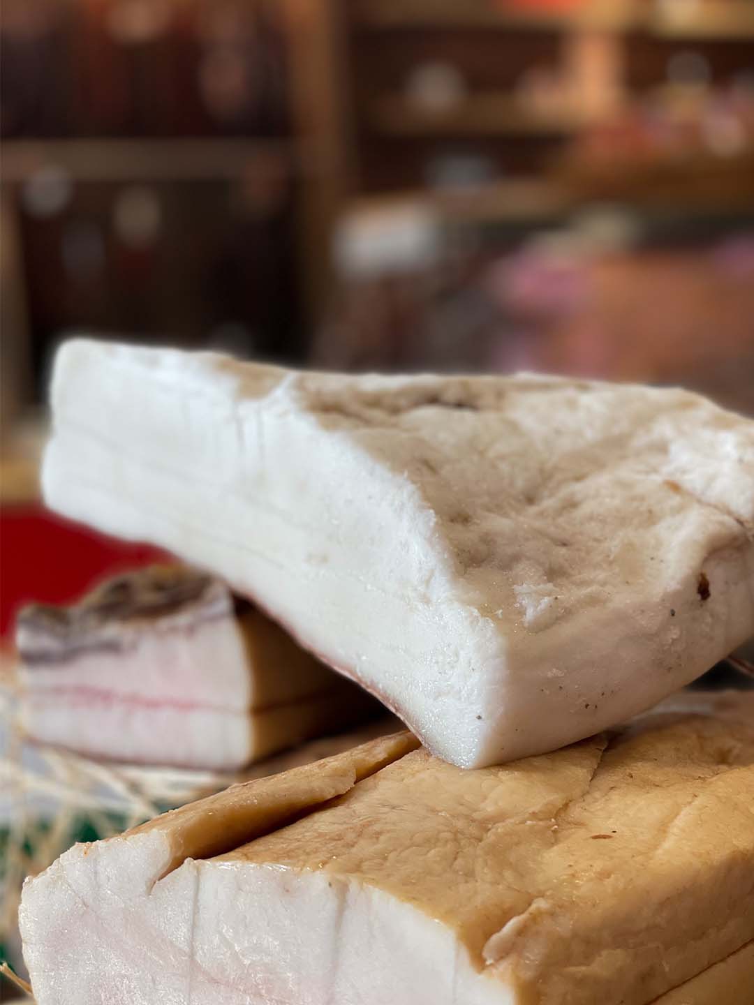 niemalże rozpływa się w ustach. Jest to boczek z mięsa świń rasy mangalica, tradycyjnie solony i dojrzewający. Mocno wyczuwalna sól doskonale uzupełnia niuanse smakowe oferowane przez szlachetne mięso mangalicy. Naturalny proces dojrzewania, brak zbędnych składników i chemicznych ulepszaczy sprawiają, że jest to wędlina taka, jakie wielu z nas zna z dzieciństwa i wiejskich uczt.