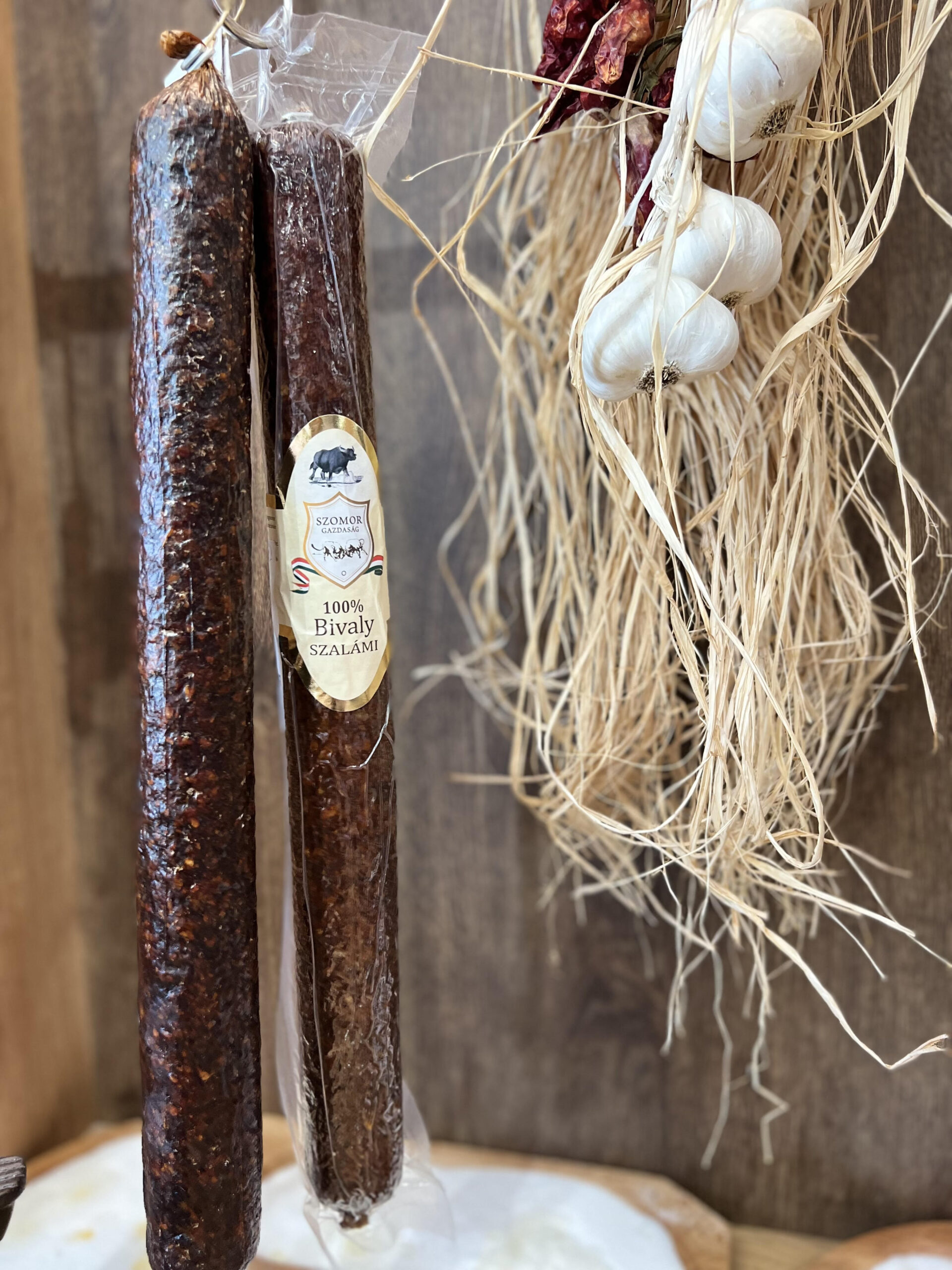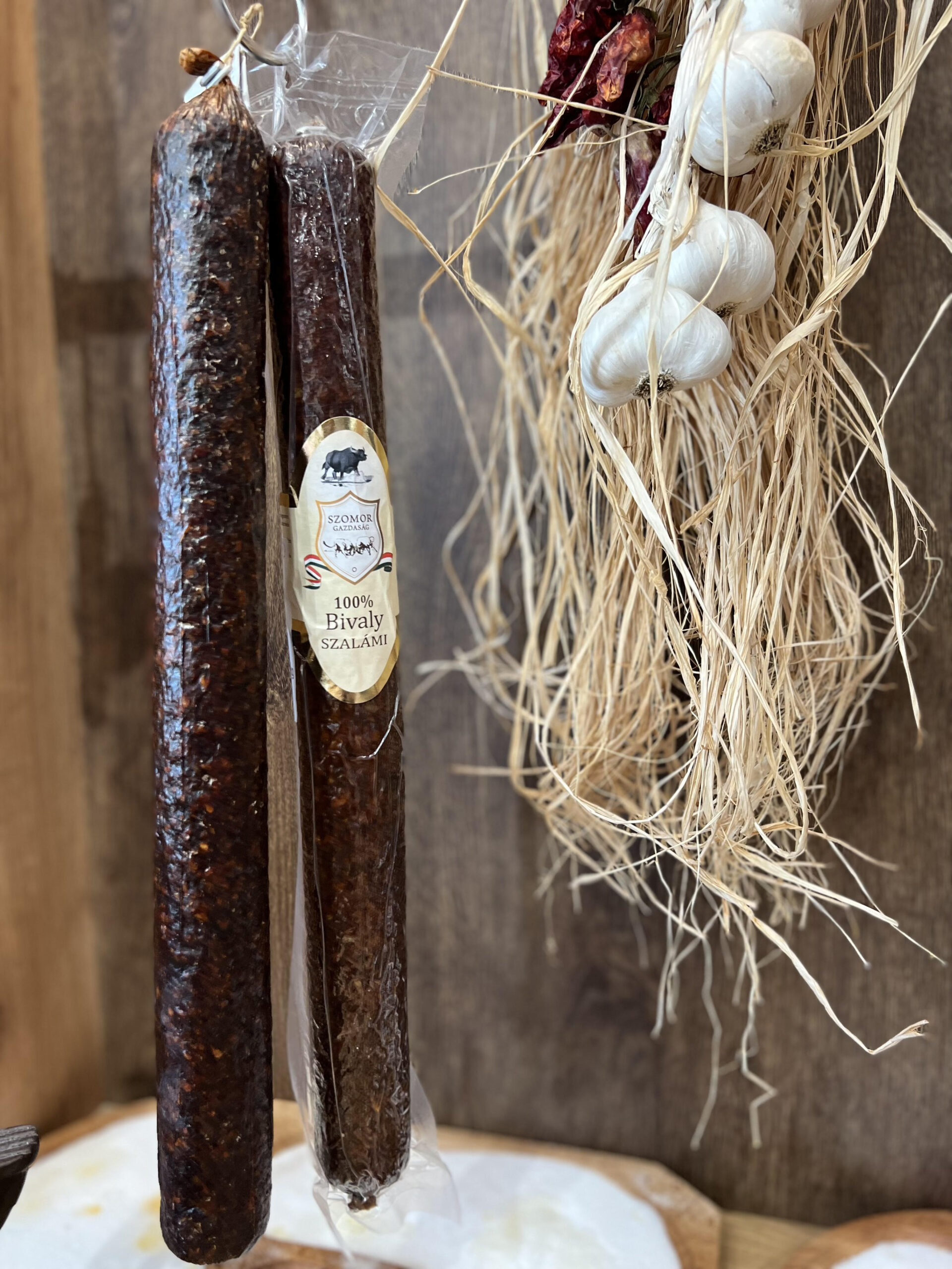 Szalami Bivaly Csemege to stuprocentowe salami bawole, które pochodzi z zakładu przetwórczego zlokalizowanego w Dömsöd. Do wyrobu 100 gramów gotowego produktu wykorzystano tyle samo mięsa tradycyjnie owędzanego i dojrzewanego w tymże zakładzie. Produkt wędliniarski cechuje się niesamowicie prostym składem i brakiem jakichkolwiek dodatków polepszających konsystencję bądź smak. Dzięki naturalnym metodom wytwórczym, kiełbasa salami nie musi być zabezpieczana chemicznymi związkami siarkowymi.
