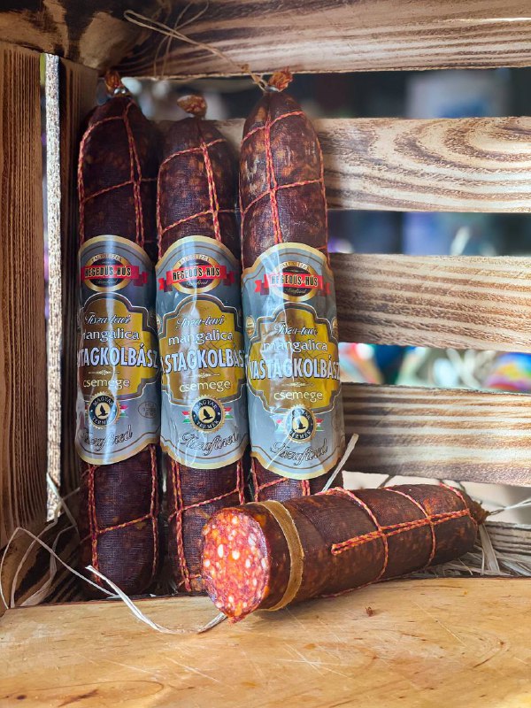 Półmetrowa kiełbasa vastag csipos kolbasz to klasyczny przedstawiciel słynnej węgierskiej sztuki wędliniarstwa. Ta szybko dojrzewająca kiełbasa już na pierwszy rzut oka zdradza swoje pochodzenie poprzez charakterystyczną barwę (ciemne czerwienie przetkane cynobrem i karminem) oraz nęcący aromat węgierskiej papryki. Vastag csipos kolbasz od razu zdradza znamiona kunsztu wędliniarskiego, jej doświadczonych twórców.
